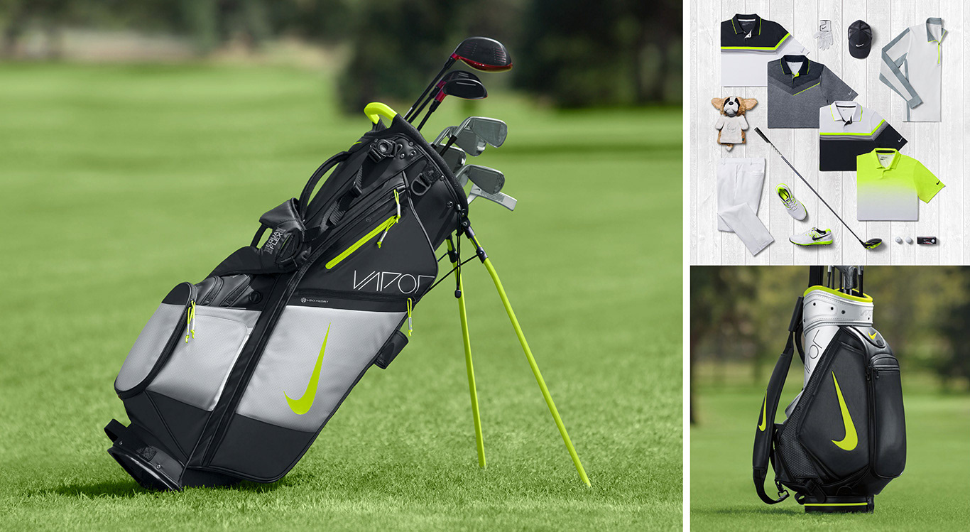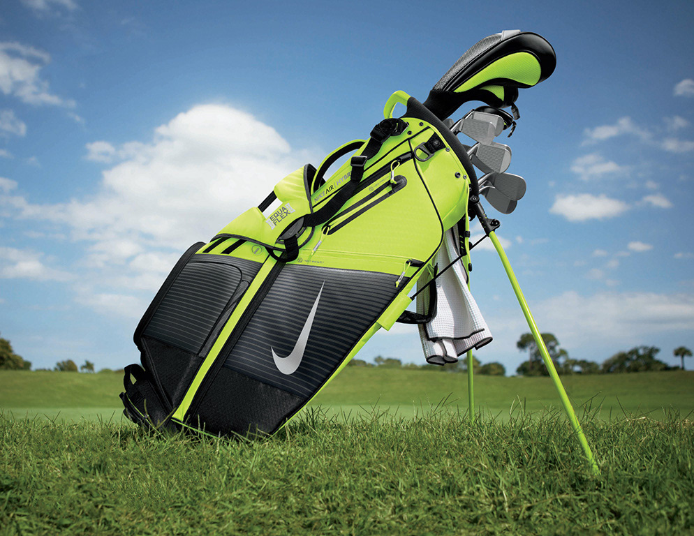 The Nike Air Hybrid is a lightweight and versatile golf bag designed for walking or riding. Its 14-way top and 12 functional pockets allows athletes to stay organized during a round.