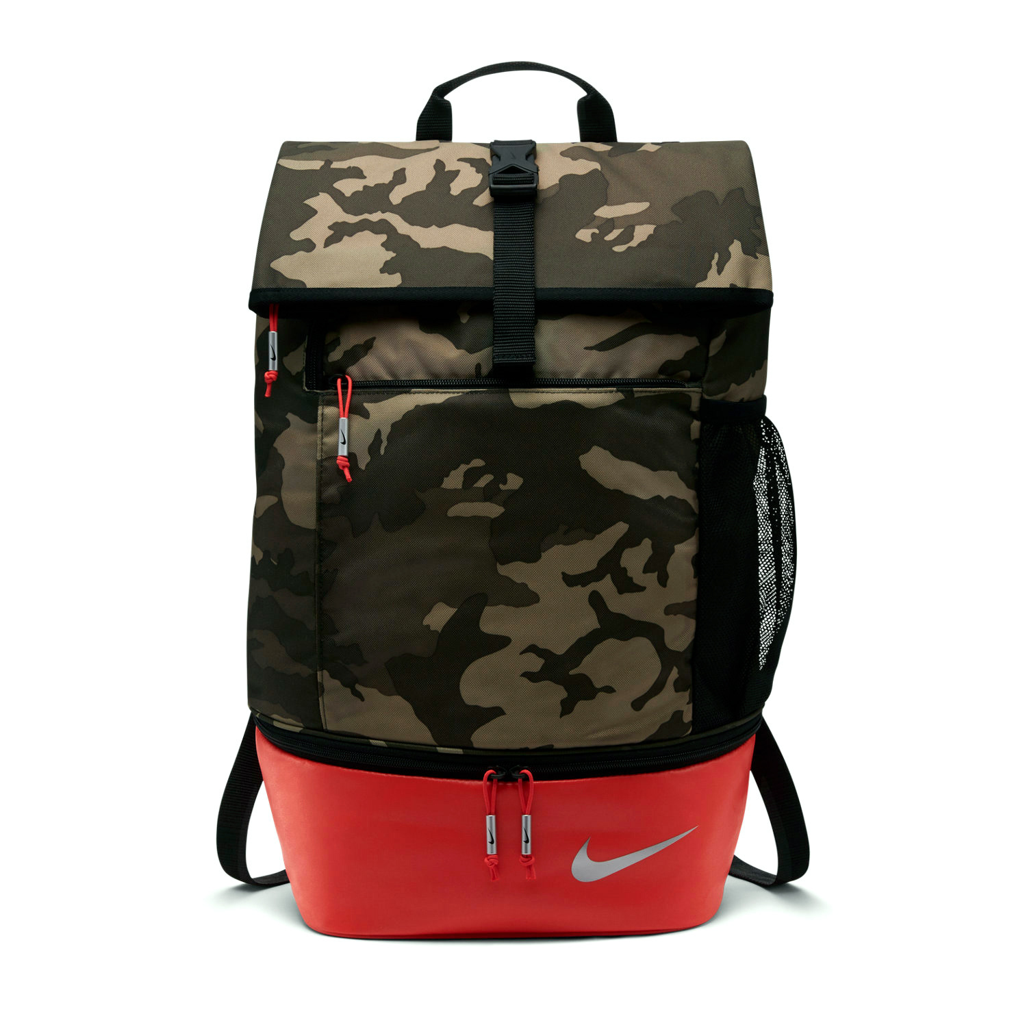 The Nike Sport Backpack features a clean, pared-down design for use on and off the golf course. It has a fold-over top with buckle closure and multiple accessory pockets to keep your gear secure and organized when you're on the move. A zip shoe compartment stores your footwear separate from your other items.